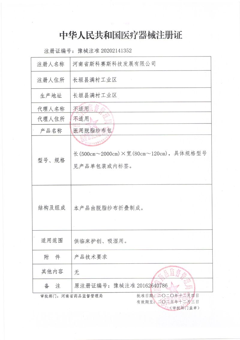 斯科賽斯主要生產(chǎn)醫(yī)用麻醉系列、醫(yī)用高分子系列、醫(yī)用敷料包系列、醫(yī)用無(wú)紡布系列、醫(yī)用防護(hù)系列、醫(yī)用脫脂棉系列、生物材料制品類等七大類、100 多個(gè)品種、400 多個(gè)規(guī)格的產(chǎn)品。公司占地面積約 30000 平方米,建筑面積20000 平方米,擁有 10 萬(wàn)級(jí)的凈化車間總面積 10000 平方米。擁有國(guó)際先進(jìn)水平的生產(chǎn)設(shè)備和檢測(cè)儀器,技術(shù)裝備精良,檢測(cè)手段完善,為醫(yī)療行業(yè)的不斷發(fā)展進(jìn)步提供保障。公司順利通過(guò) ISO9001、ISO13485 質(zhì)量管理體系認(rèn)證。